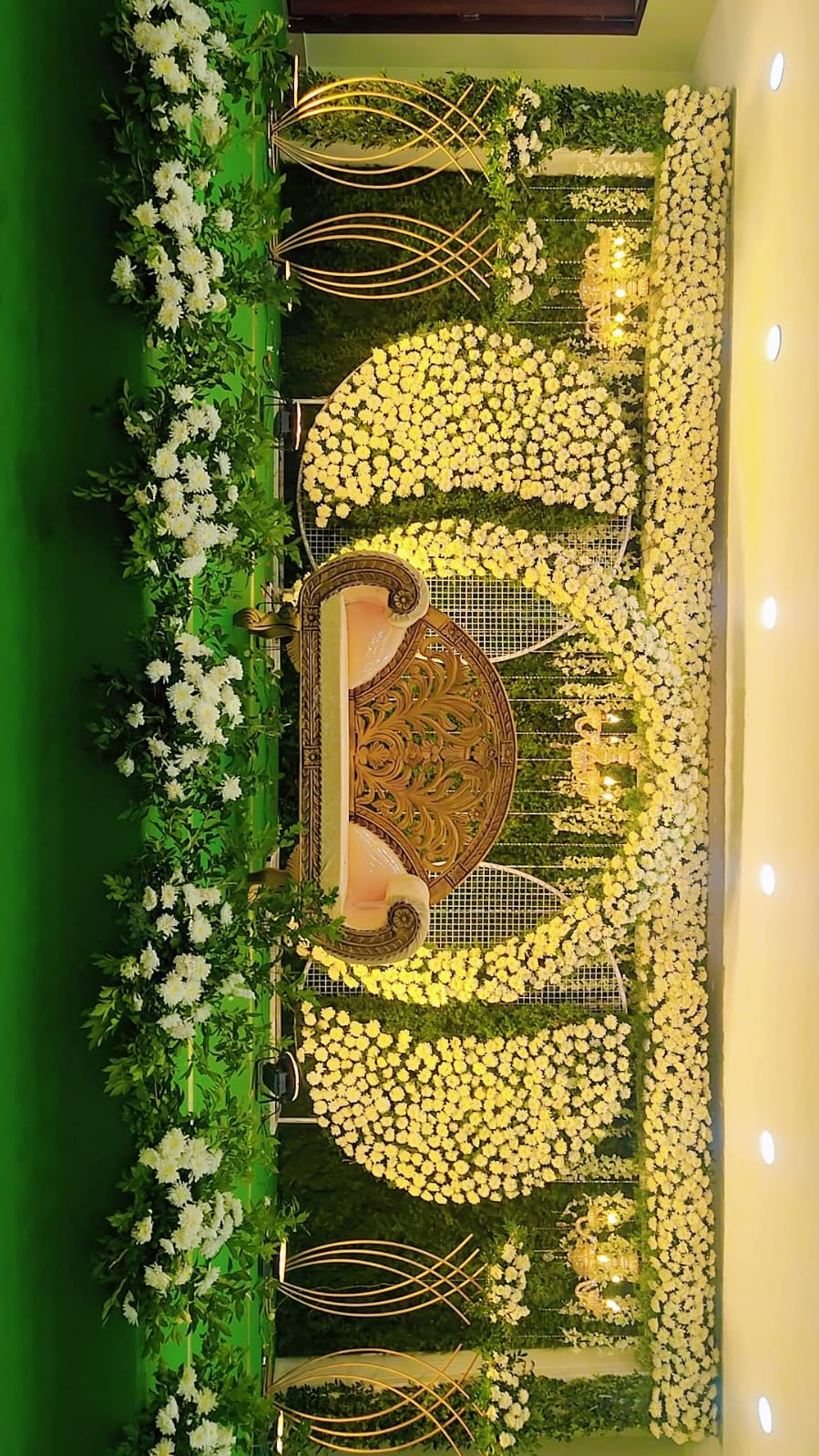 An opulent entrance arch adorned with cascading roses, orchids, and fairy lights — setting the tone for an unforgettable ceremony.